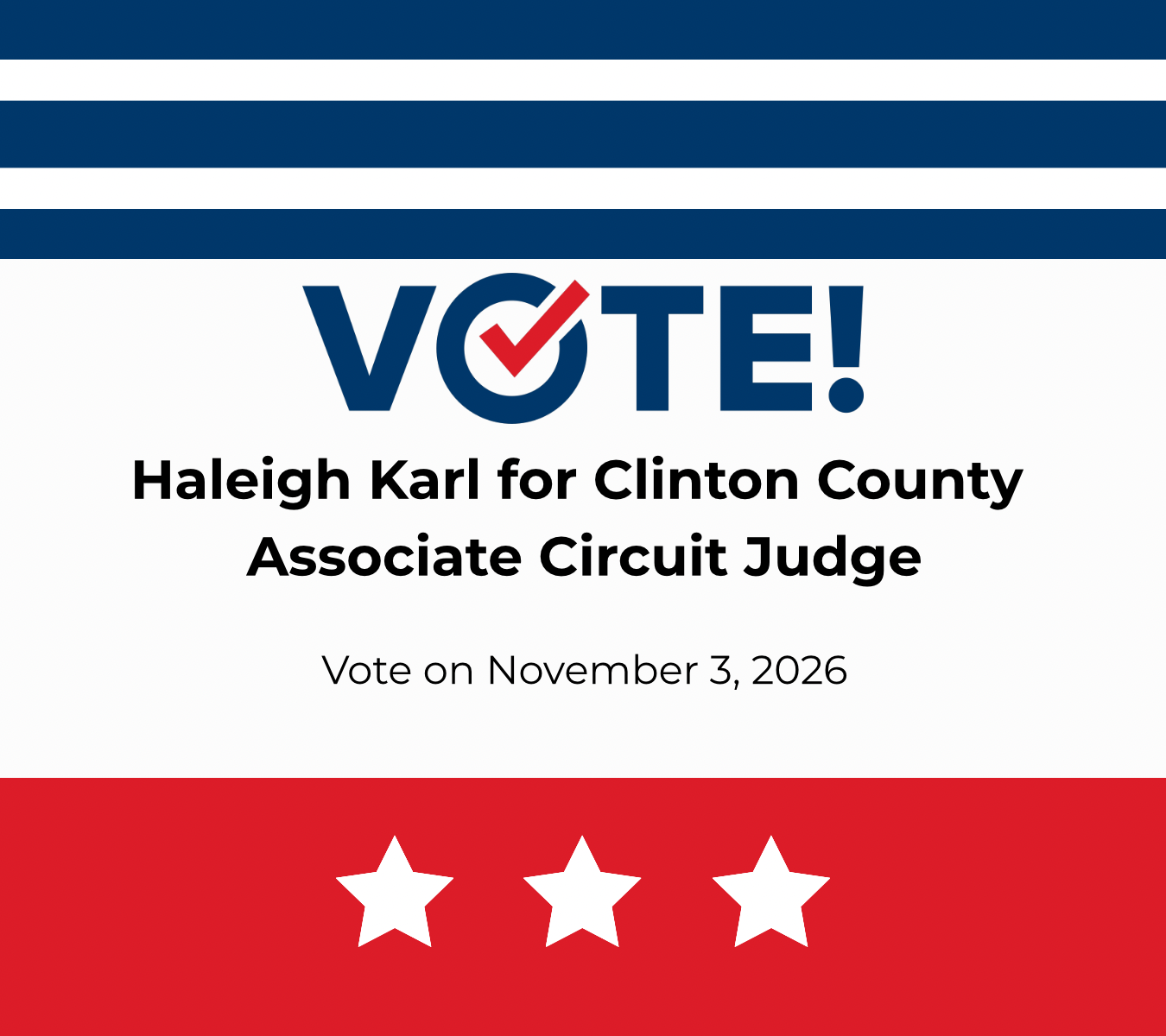 My values were shaped early through years in 4-H and FFA, where I learned the importance of responsibility, integrity, and doing things the right way. Having been born and raised here, I have a lifelong connection to this community and a deep understanding of the values that make Clinton County strong. I know what matters most to the people of Clinton County.